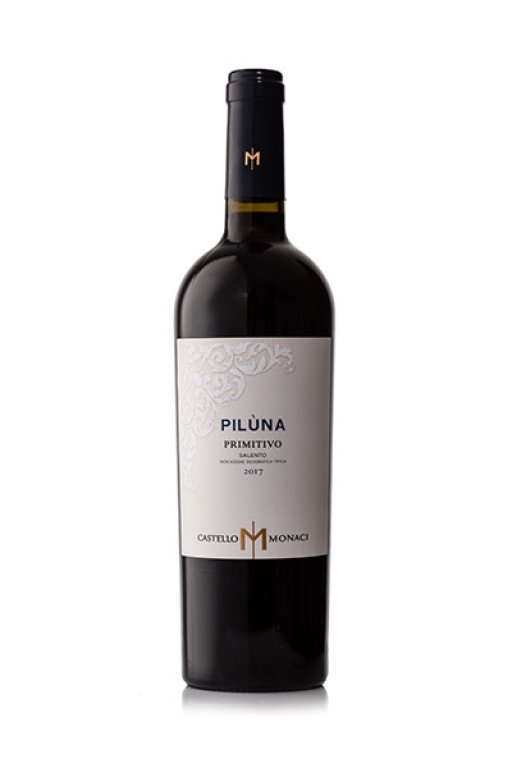 Zo samej päty Talianska, regiónu Salento, rozprestierajúceho sa v blízkosti mora a prastarých olivových hájov, pochádza slnkom vytvorená "Pilùna" z odrody Primitivo. Na pohľad je víno hlbokého temne rubínového a takmer nepriehľadného odtieňa, vo vôni pripomína kompótové kôstkovité ovocie, s dotykom dubu, čokolády, sladkého drievka a exotiky. Má vynikajúcu štruktúru, ktorej zložky sú v perfektnej harmónii, čo dáva tomuto vínu predpoklad k dlhej archivácii.